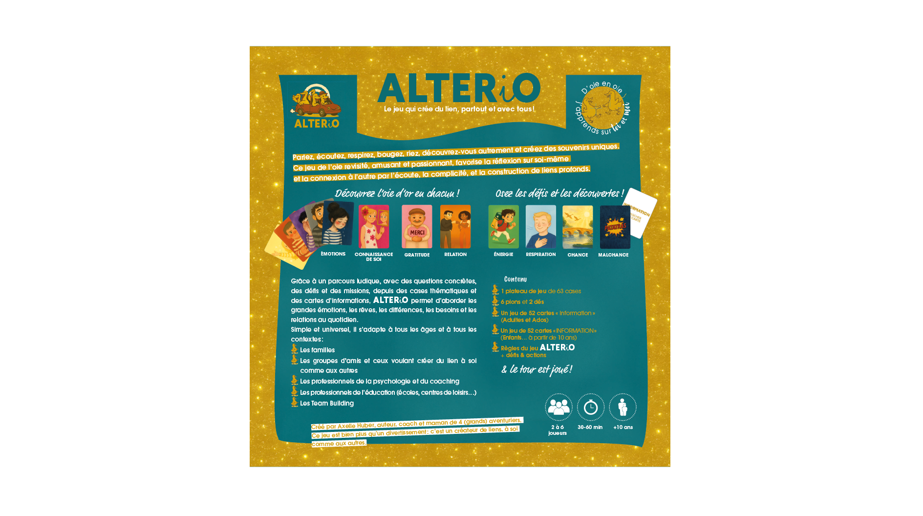 Alterio, c’est plus qu’un jeu de société : c’est une expérience humaine, drôle et bienveillante, qui invite à se (re)découvrir à travers des défis, des émotions et des missions inattendues.